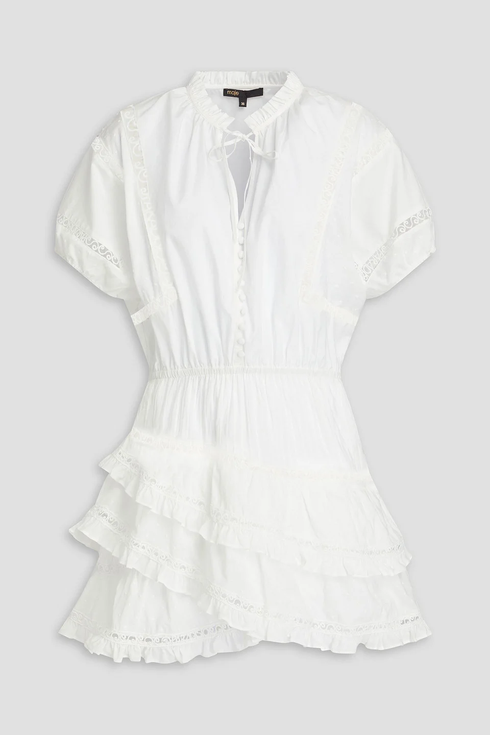 Ruffled guipure lace-trimmed cotton and Swiss-dot mini dress
