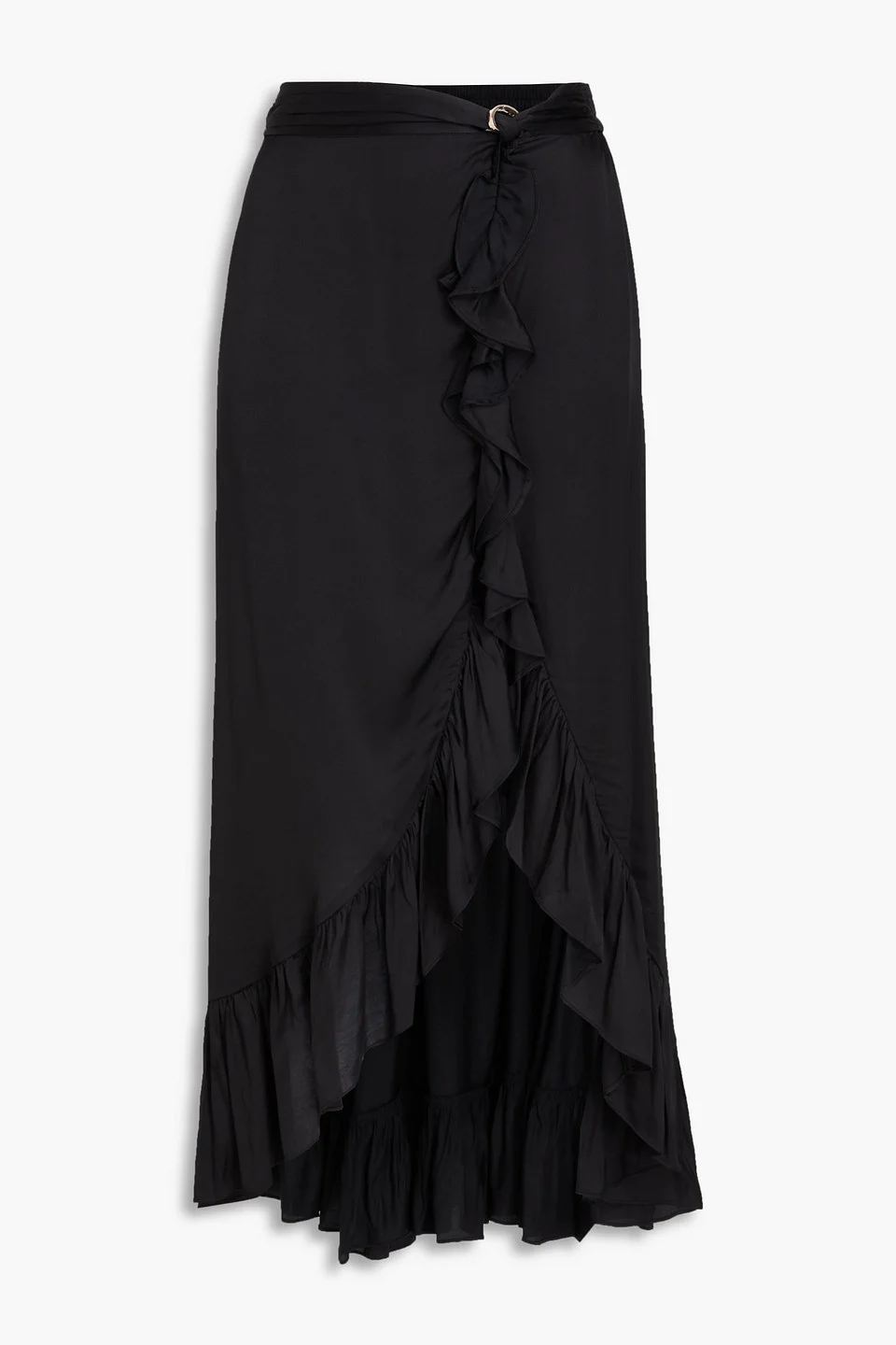 Ruffled satin midi skirt