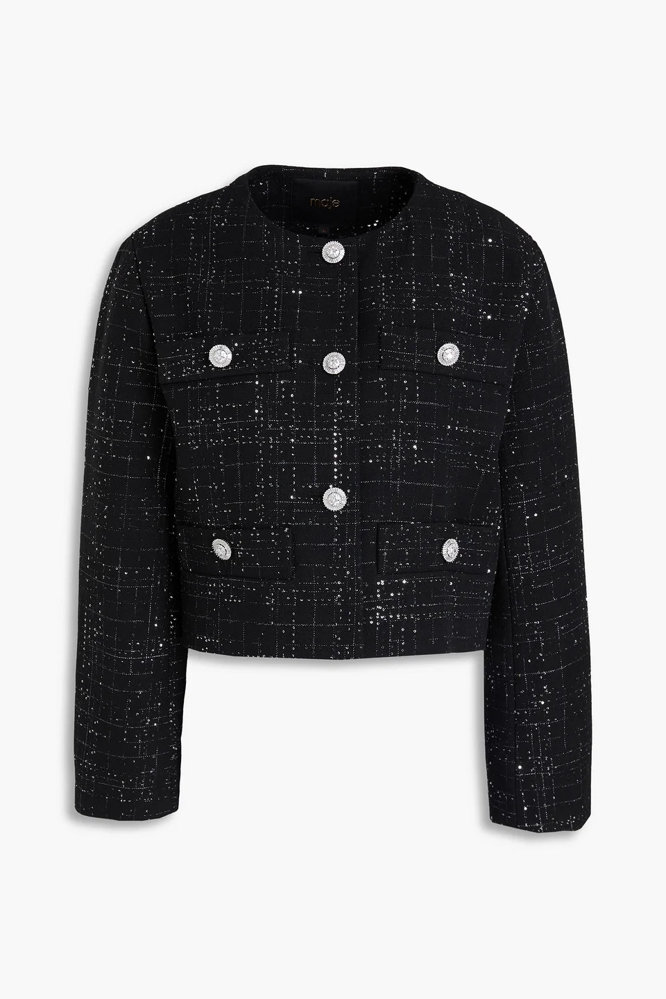 Sequin-embellished metallic tweed jacket