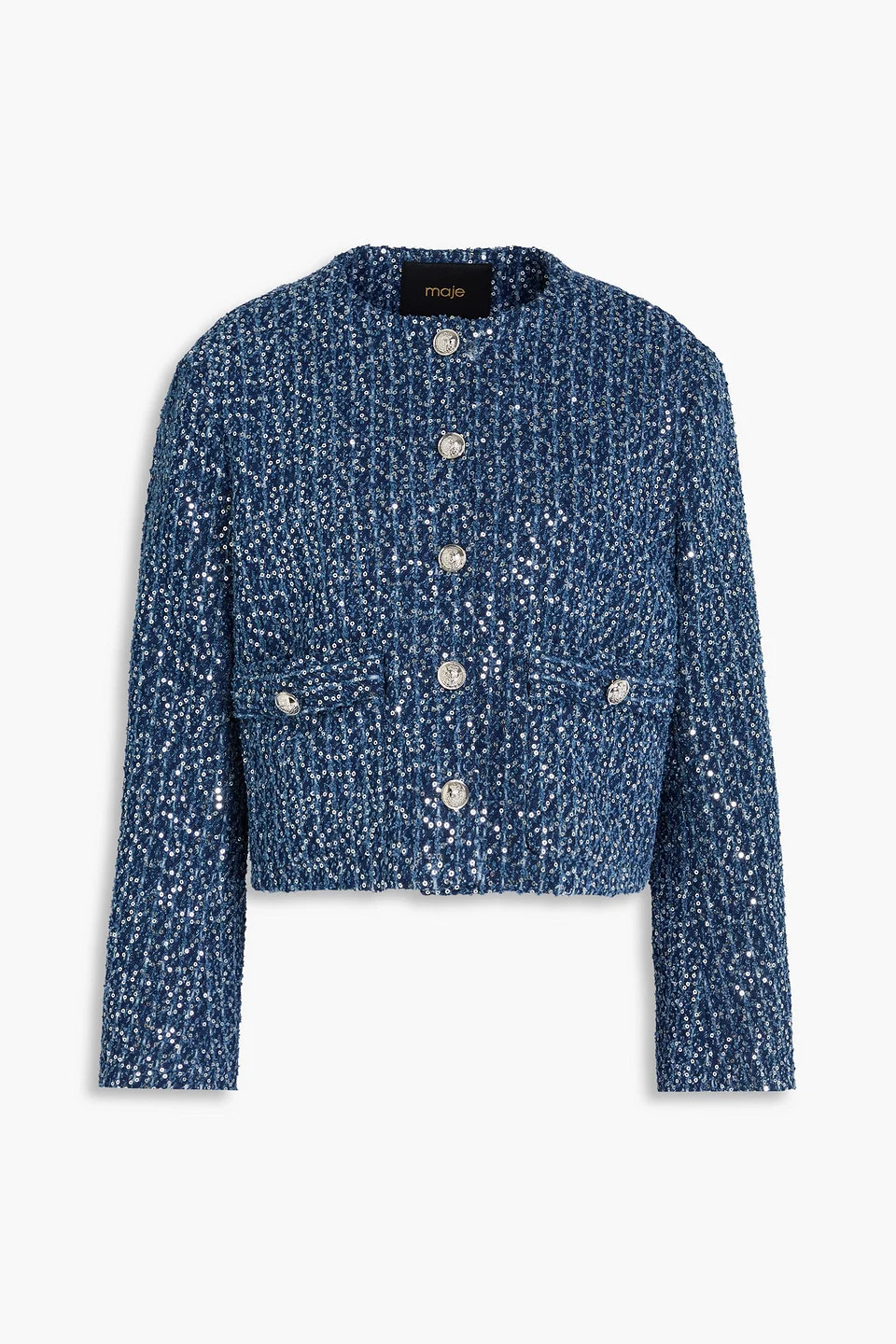 Jacket denim frayed sequins front patch pockets button fastenings through front fully lined mid-weight, non-stretchy fabric dry clean matching shorts also available imported 80% Cotton 20% Polyester Product Code 46376663162950084
