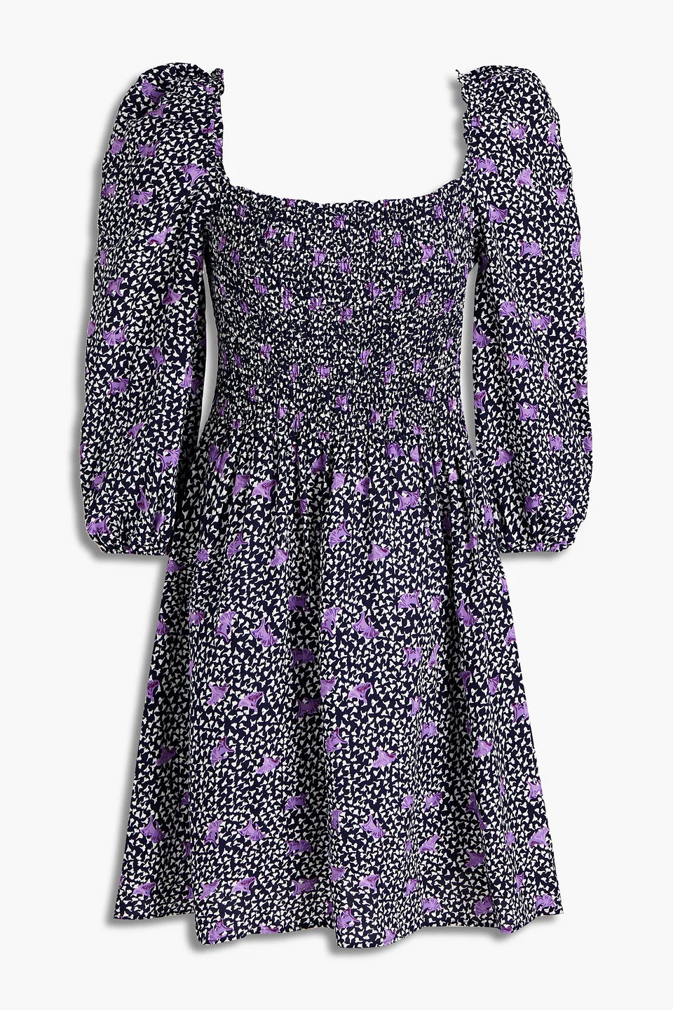 Dress floral-print crepe ruffled trims shirred gathered sleeves elasticated cuffs two front slant pockets slips on non-stretchy fabric mid-weight fabric hand wash or dry clean imported 65% Viscose 35% Linen Product Code 38063312419110898