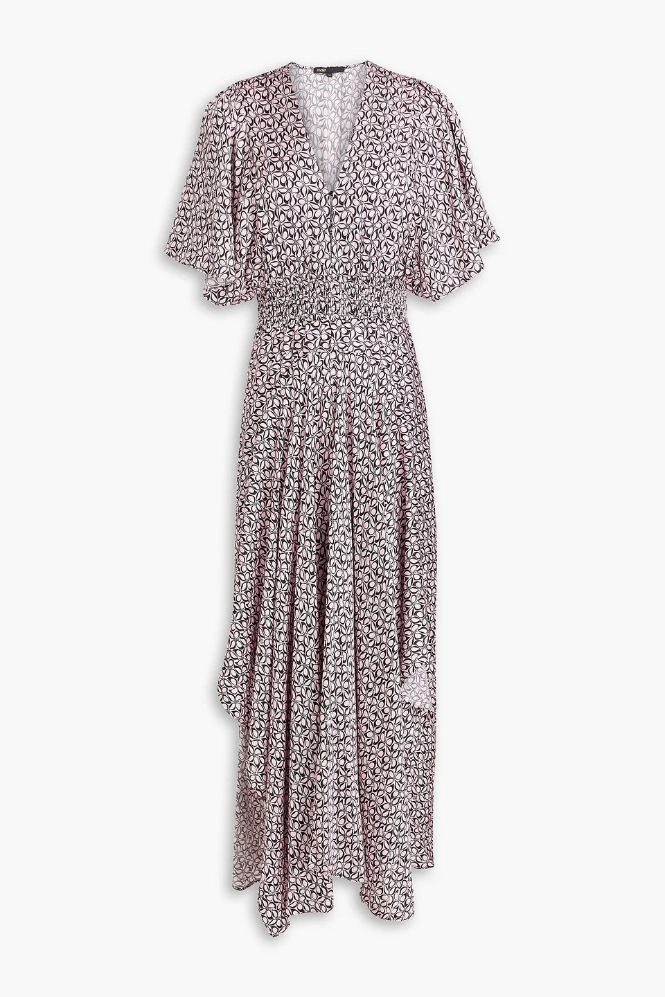 Dress printed satin shirred trims asymmetric hem slips on mid-weight, non-stretchy fabric hand wash or dry clean imported 100% Viscose Product Code 46376663162837588