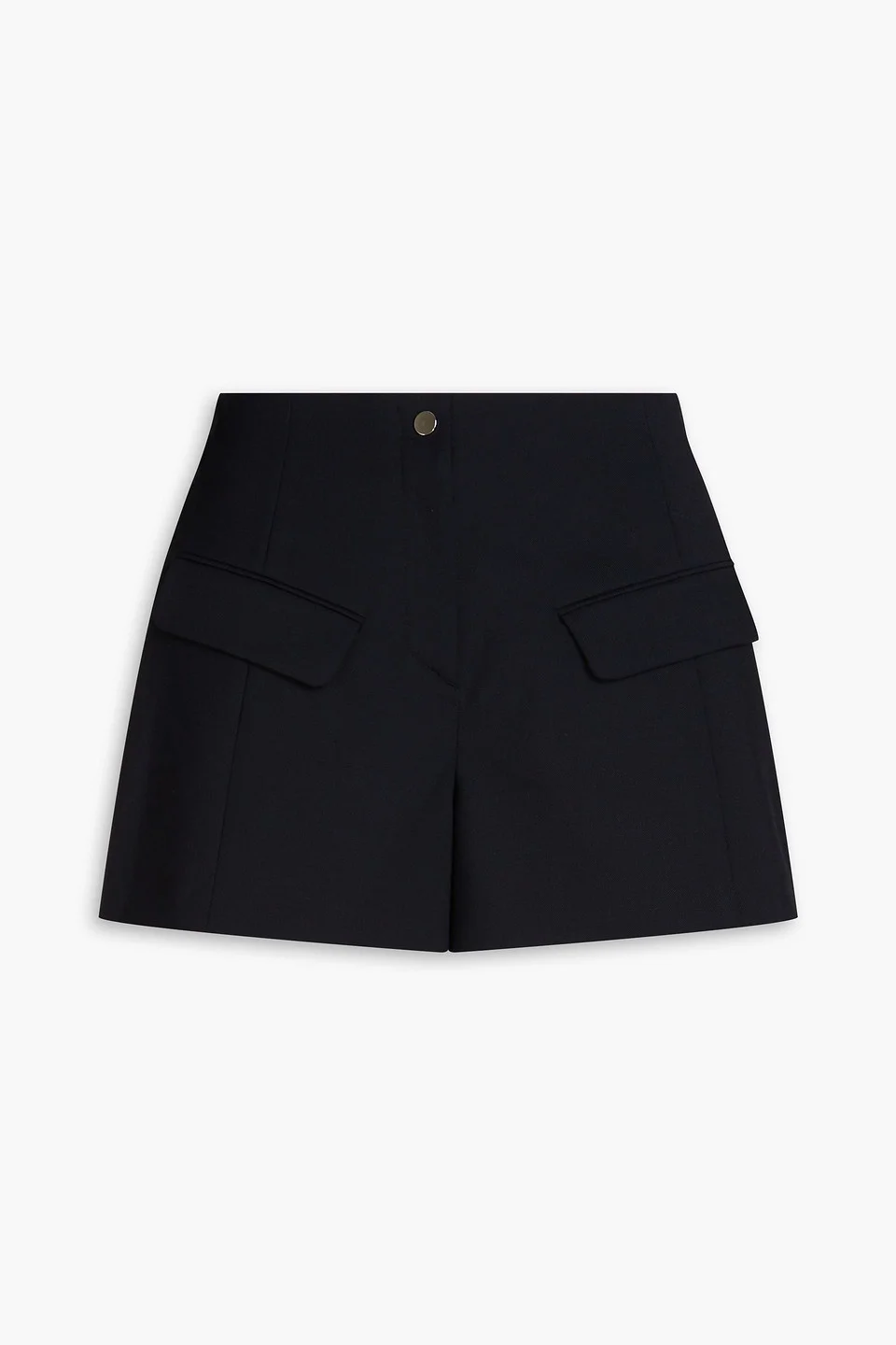 Shorts twill partially elasticated waist high-rise cut back welt pocket two front flap pockets snap and concealed zip fastening at front mid-weight, non-stretchy fabric dry clean imported 53% Polyester 44% Virgin Wool 3% Elastane Product Code 1647597323183466