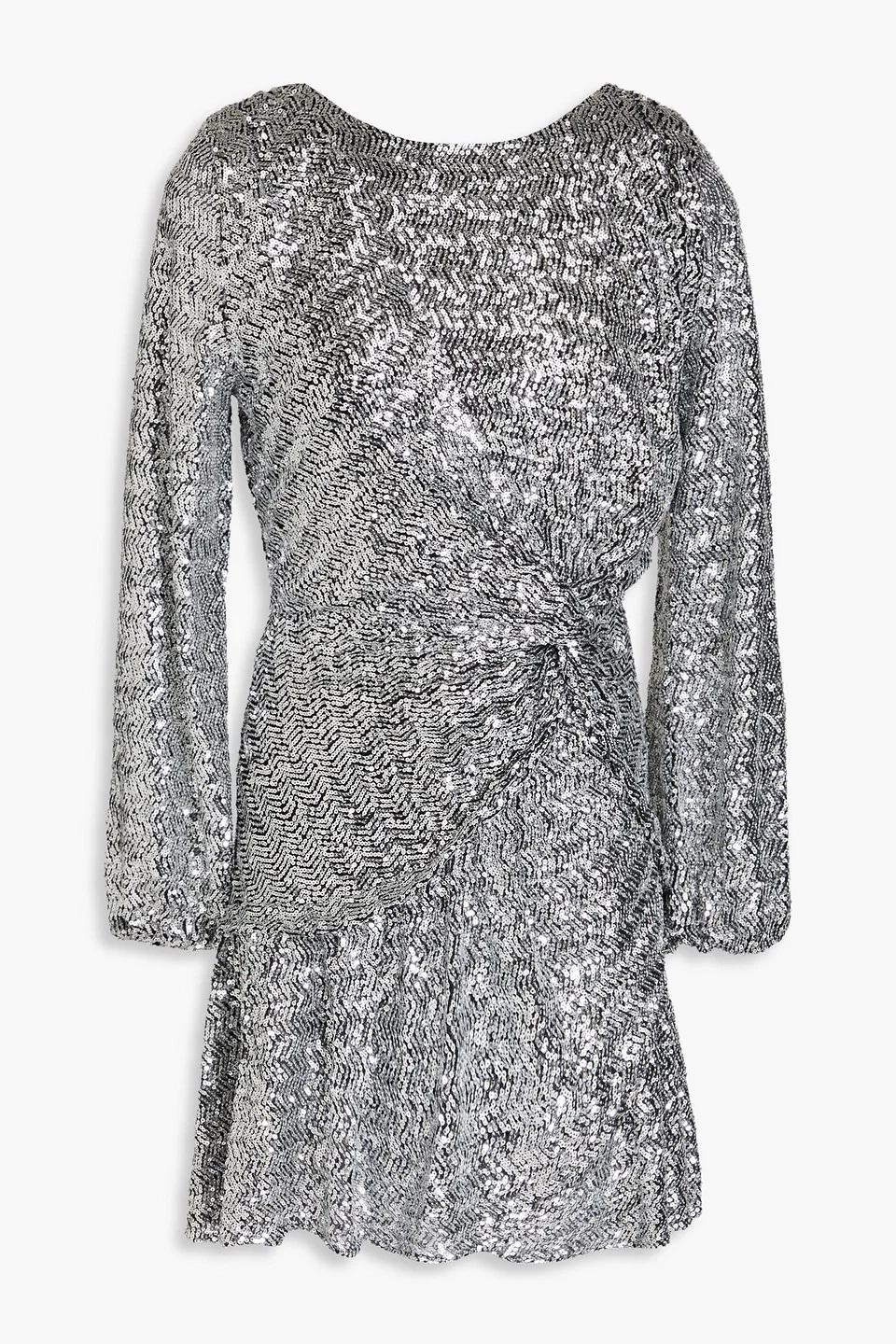 Dress stretch-tulle sequins twisted open back elasticated cuffs ruffled hem concealed hook and zip fastening at back partially lined mid-weight, stretchy fabric hand wash imported 95% Polyester 5% Elastane Product Code 1647597349654699