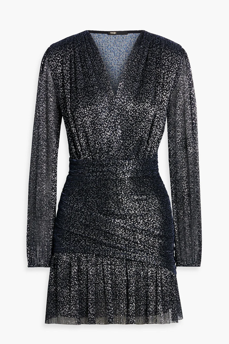 Wrap-effect lamé mini dress