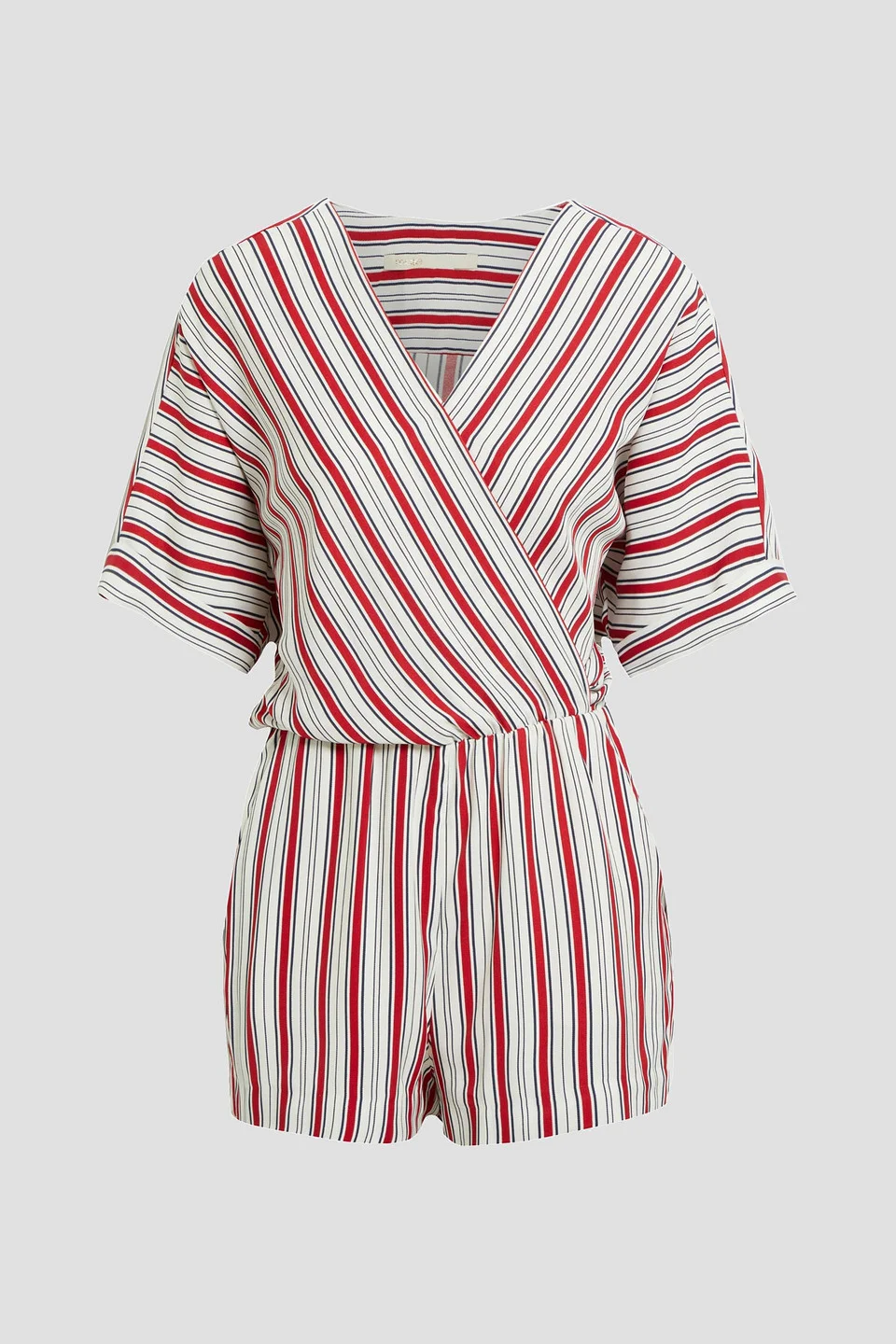 Wrap-effect striped woven playsuit