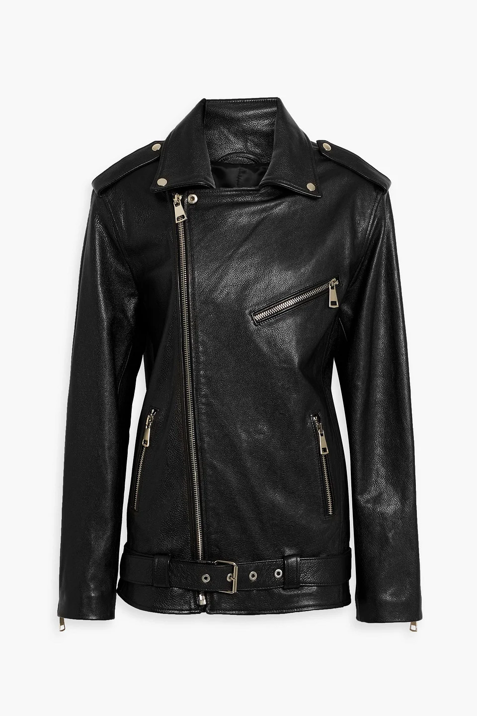 Biker jacket leather detachable belt zipped cuffs zipped pockets asymmetric zip fastening through front fully lined supple, non-stretchy leather specialist clean imported 100% Leather Product Code 46376663163117186