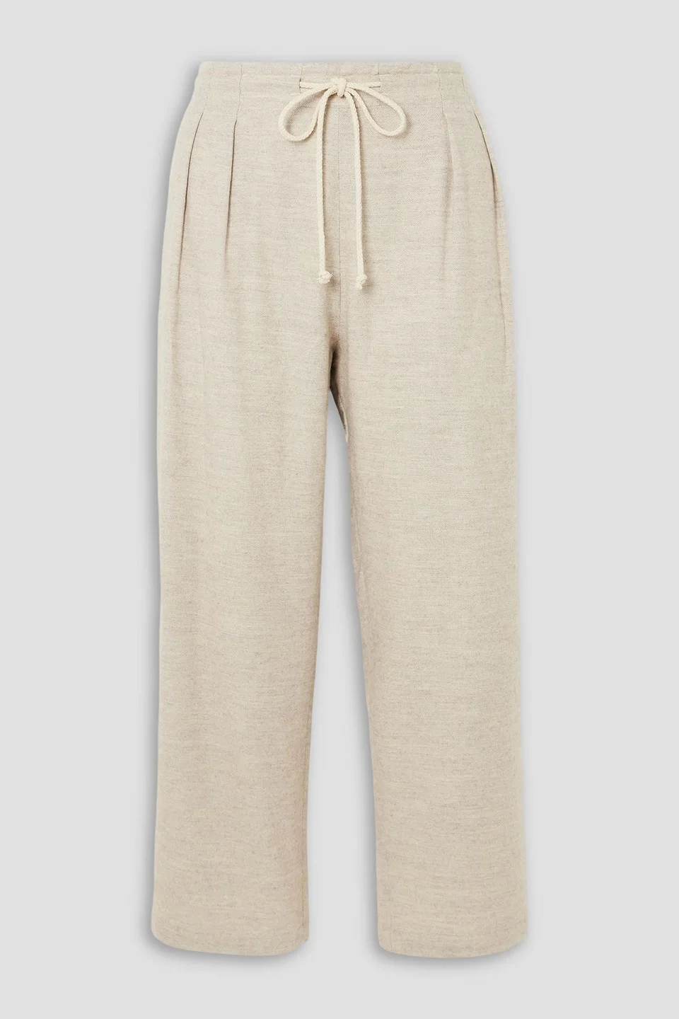 Straight-leg pants cotton and wool-blend pleated side slit pockets back welt pockets elasticated drawstring waist high-rise cut pull on mid-weight, non-stretchy fabric hand wash imported 90% Organic Cotton 10% Wool Product Code 1647597355755847
