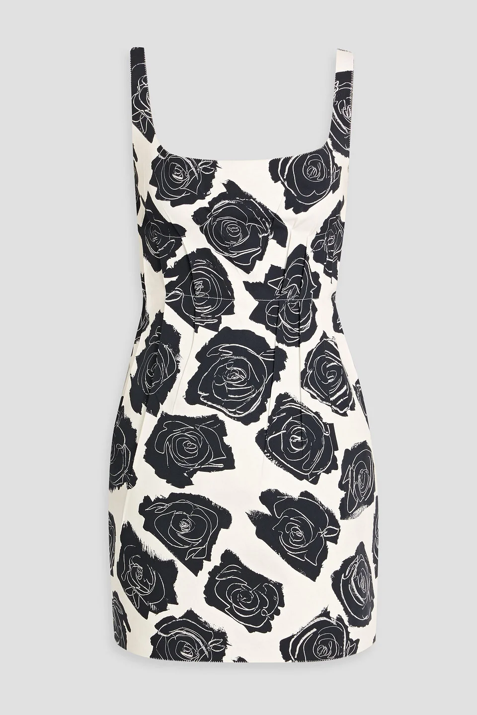 WHITE BONDED POPLIN MINI DRESS WITH LUNA PRINT