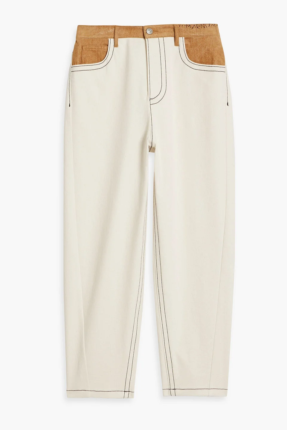 Straight-leg jeans two-tone denim belt loops high-rise cut five pockets button and concealed zip fastening at front mid-weight, slightly stretchy fabric machine wash or dry clean made in italy 97% Cotton 3% Elastane Product Code 1647597356331582