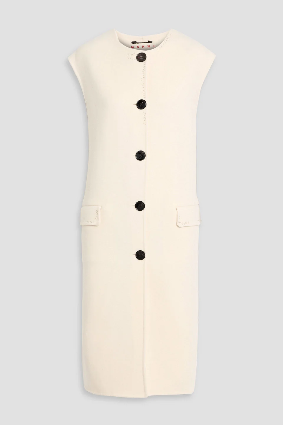 Vest wool and cashmere-blend front flap pockets button fastenings through front mid-weight, non-stretchy fabric dry clean made in italy 90% Wool 10% Cashmere Product Code 46376663163069406