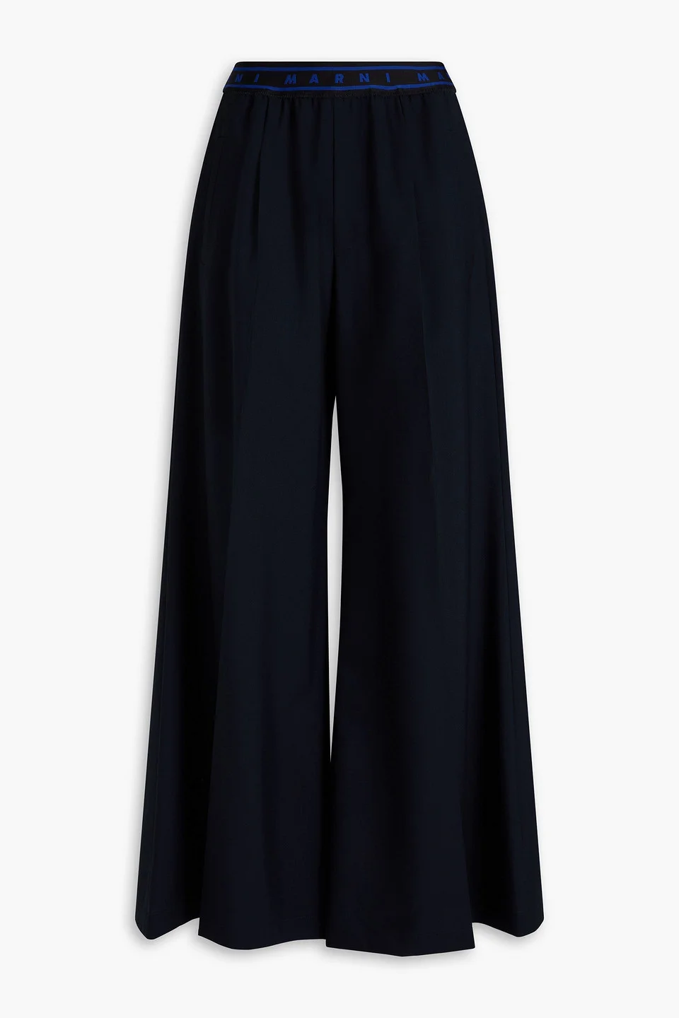 Wide-leg pants wool logo-jacquard pleated two side welt pockets two back welt pockets elasticated waist high-rise cut pull on mid-weight, non-stretchy fabric dry clean made in italy 100% Virgin Wool Product Code 46376663162849619