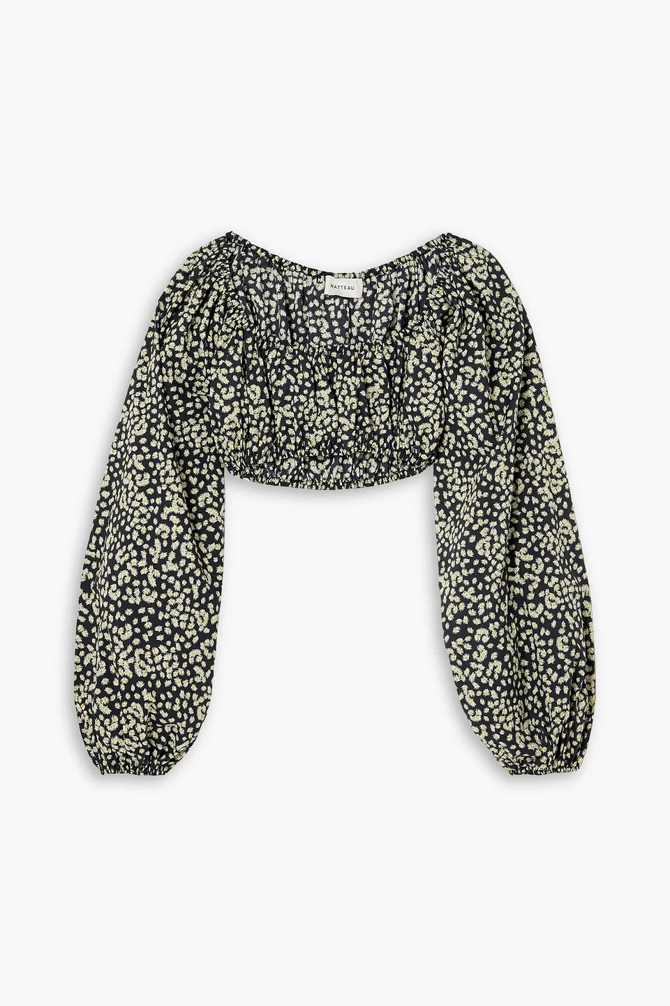 Top floral-print cotton-poplin cropped gathered sleeves elasticated cuffs slips on non-stretchy fabric mid-weight fabric dry clean imported 100% Organic Cotton Product Code 1647597315869044
