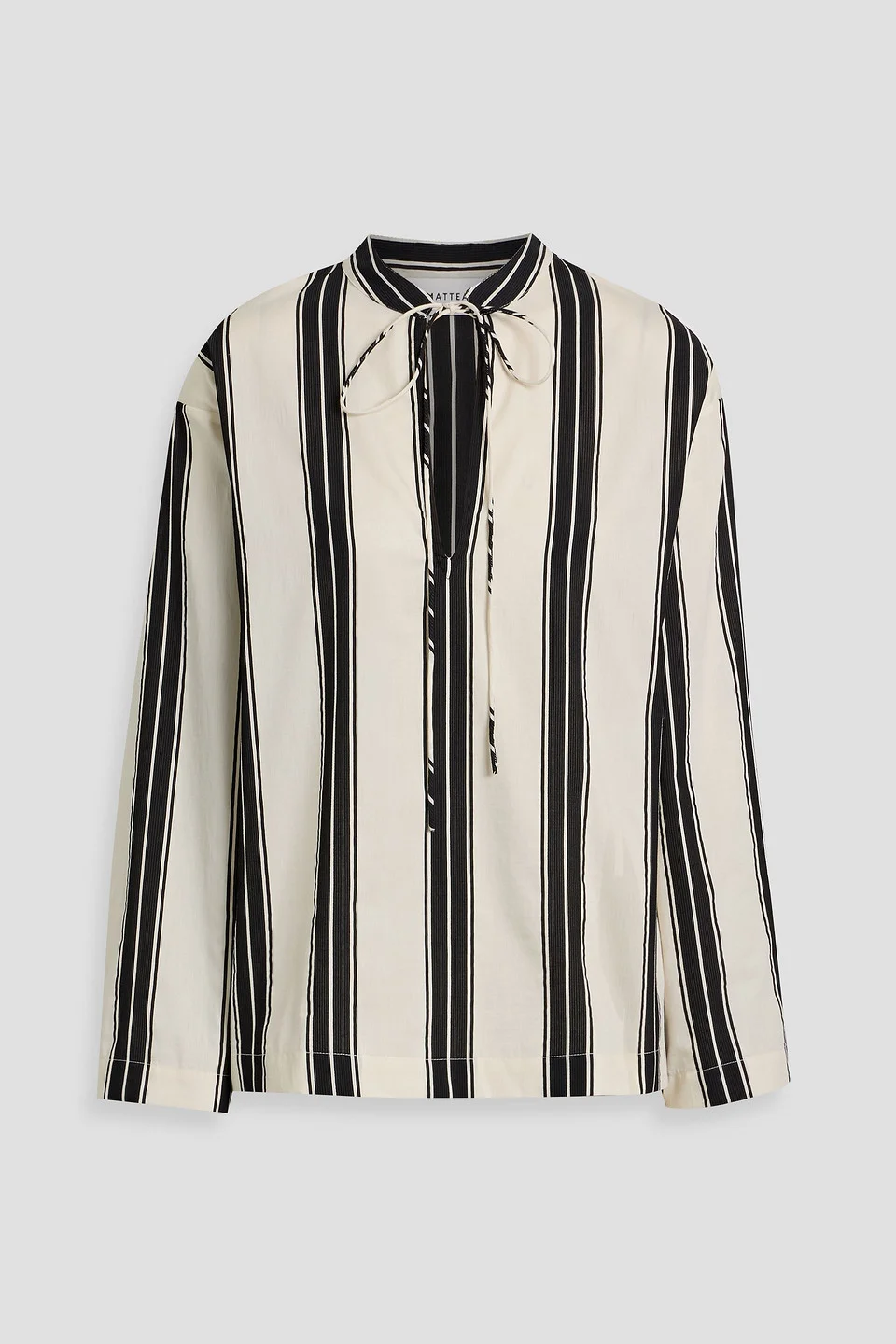 Blouse striped cotton-blend tie-fastening keyhole at front lightweight, non-stretchy fabric machine wash or dry clean imported 85% Cotton 15% Recycled polyamide Product Code 46376663163119981