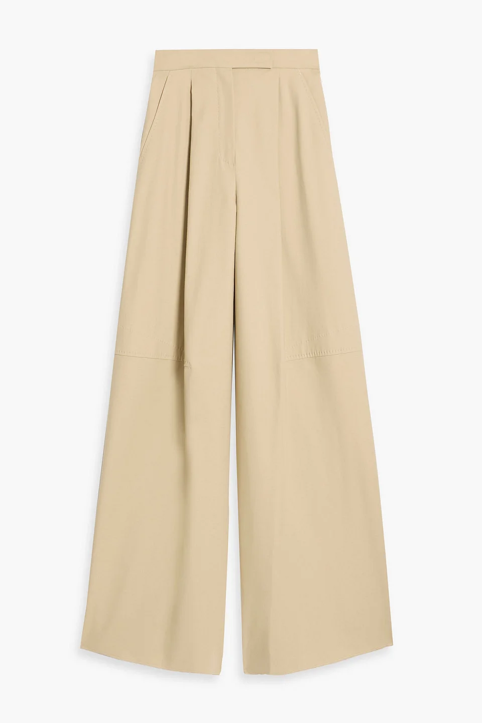 Wide-leg pants cotton-blend pleated front slant pockets back welt pockets high-rise cut concealed hook, button and zip fastening at front mid-weight, non-stretchy fabric dry clean imported 95% Cotton 5% Elastane Product Code 46376663162983201