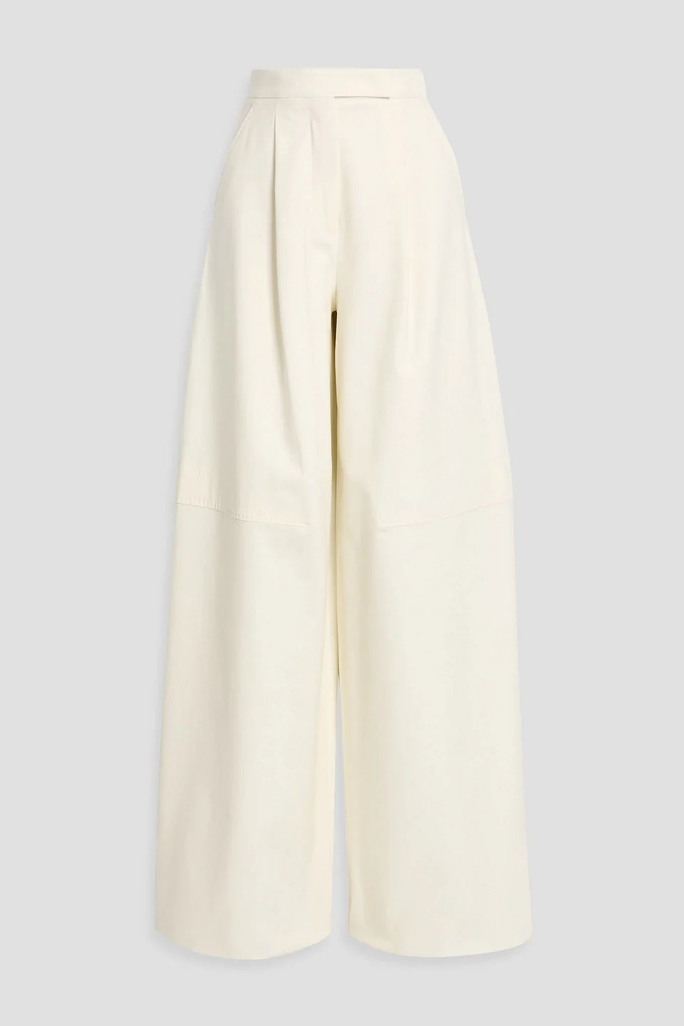 Wide-leg pants cotton-blend pleated front slant pockets back welt pockets high-rise cut concealed hook, button and zip fastening at front mid-weight, non-stretchy fabric dry clean imported 95% Cotton 5% Elastane Product Code 46376663163032683
