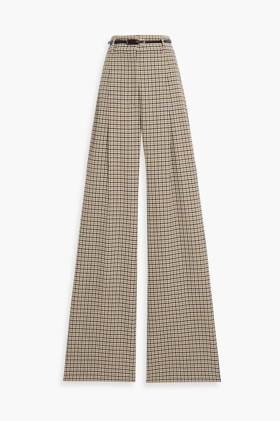 Wide-leg pants checked wool pleated detachable belt front slant pockets high-rise cut concealed hook, button and zip fastening at front mid-weight, non-stretchy fabric dry clean imported 100% Wool Product Code 46376663163109080