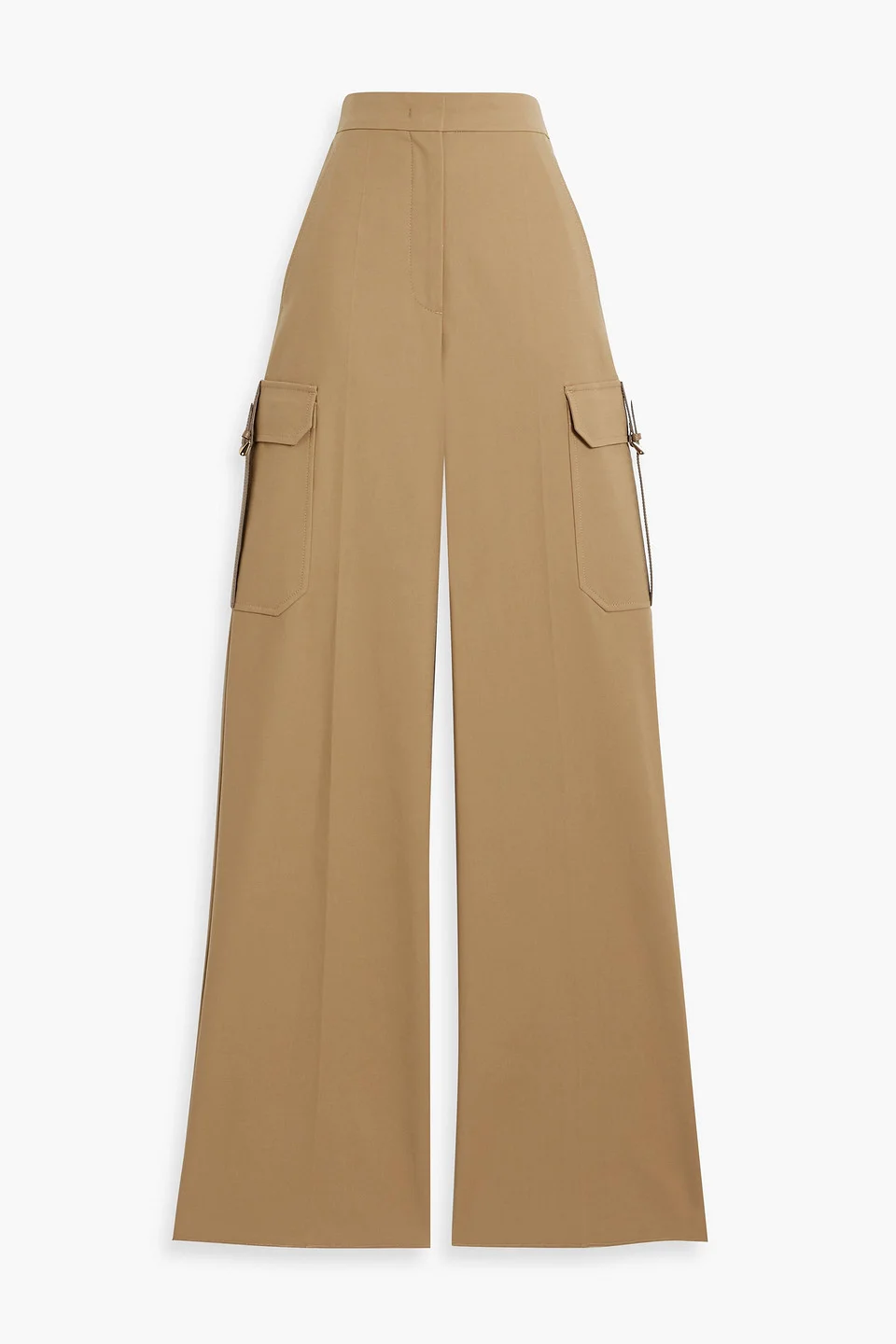 Cargo pants cotton-blend leather trims two front slant pockets bellows pocket high-rise cut concealed hook, button and zip fastening at front mid-weight, slightly stretchy fabric dry clean made in italy 95% Cotton 5% Elastane Product Code 46376663162904734
