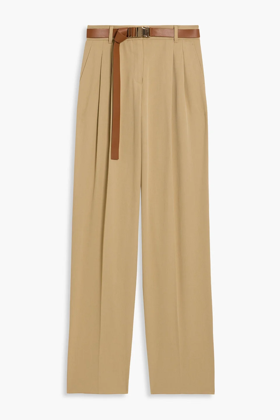 Wide-leg pants canvas pleated detachable leather belt front slant pockets belt loops high-rise cut concealed hook, button and zip fastening at front mid-weight, non-stretchy fabric dry clean imported 70% Viscose 30% Cotton Product Code 46376663162989848