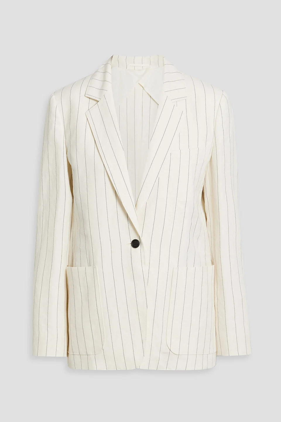 Blazer pinstriped linen and cotton-blend breast pocket two front patch pockets button fastening at front back vent mid-weight, non-stretchy fabric dry clean made in italy 58% Linen 42% Cotton Product Code 46376663162904488