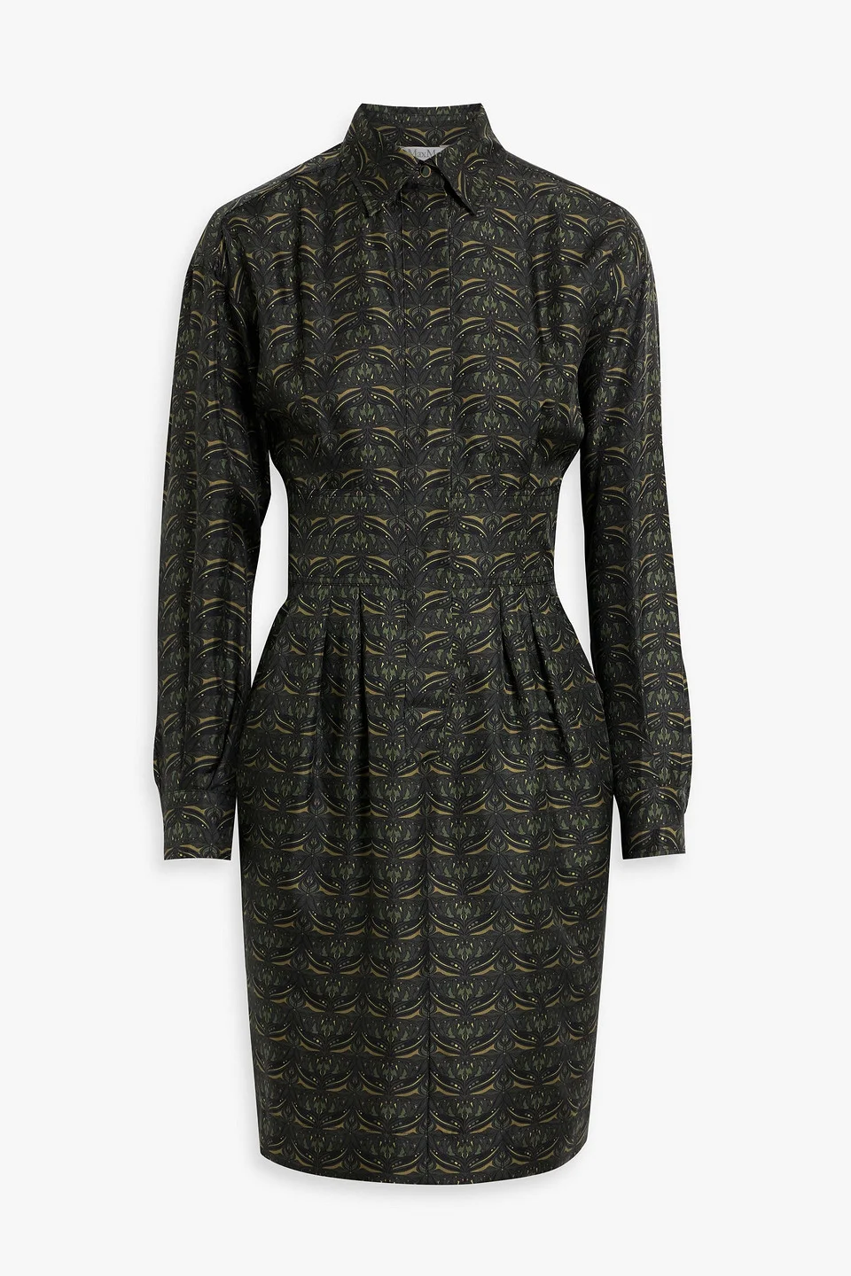Shirt dress printed silk-twill buttoned cuffs front slant pockets back slit partially concealed button fastenings along front concealed zip fastening along side mid-weight, non-stretchy fabric dry clean imported 100% Silk Product Code 46376663162990659