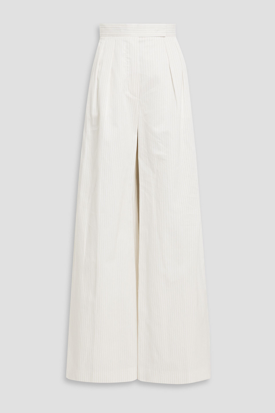 Wide-leg pants striped cotton and linen-blend pleated two side slant pockets two back welt pockets high-rise cut concealed hook, button and zip fastening at front mid-weight, non-stretchy fabric dry clean imported 78% Cotton 22% Linen Product Code 1647597355100485