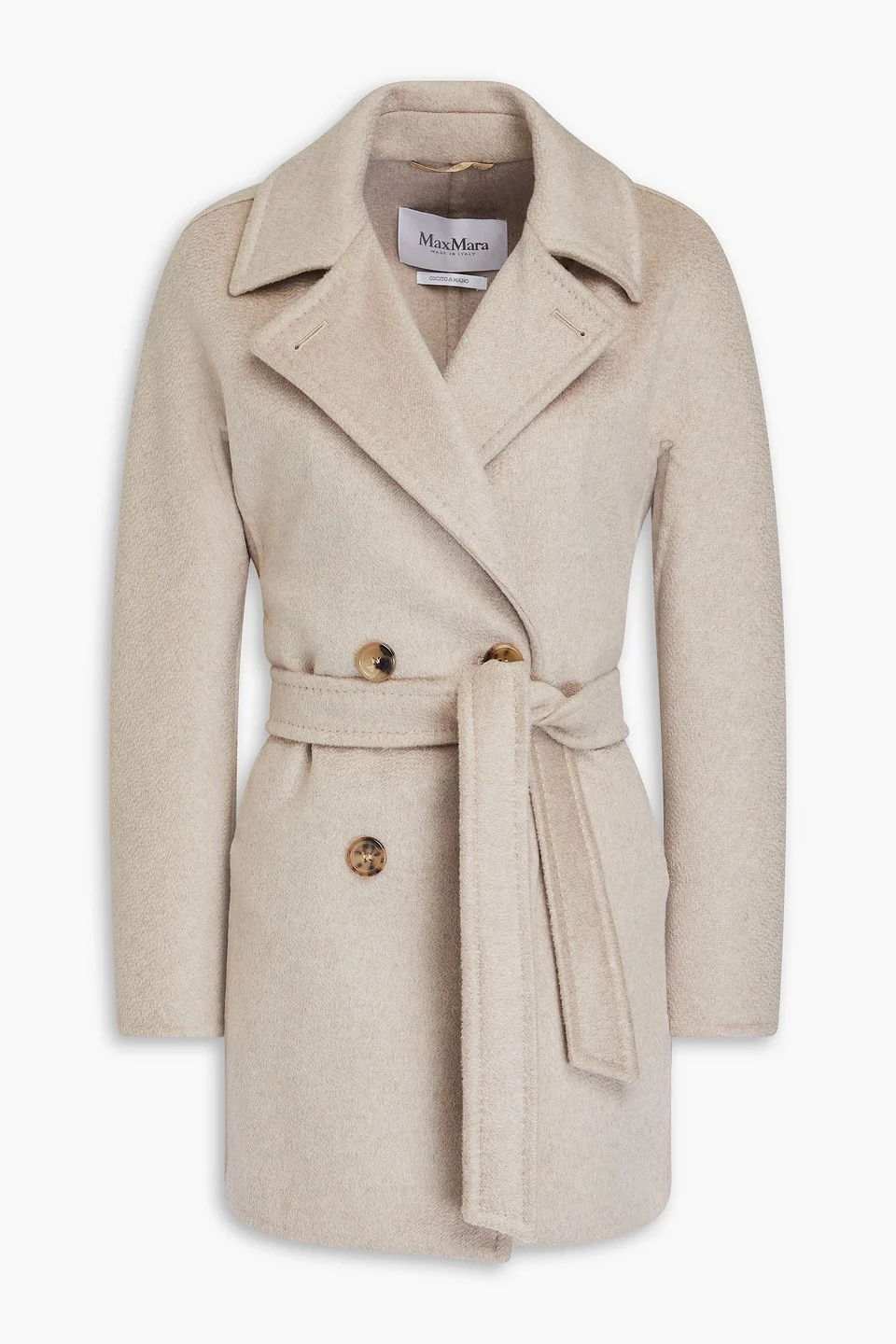 Coat cashmere-felt detachable waist tie buttoned cuffs side slant pockets button fastenings through double-breasted front mid-weight, non-stretchy fabric dry clean made in italy 100% Cashmere Product Code 46376663162855994