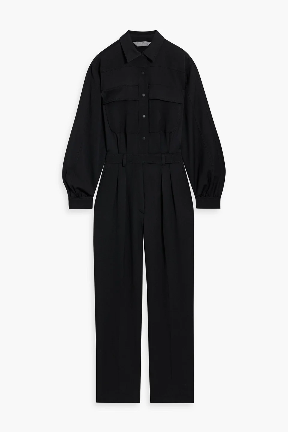 Jumpsuit wool-twill pleated belt loops snap-fastening cuffs breast pockets front slant pockets snap fastenings along front mid-weight, non-stretchy fabric dry clean made in italy 100% Virgin Wool Product Code 46376663162983188
