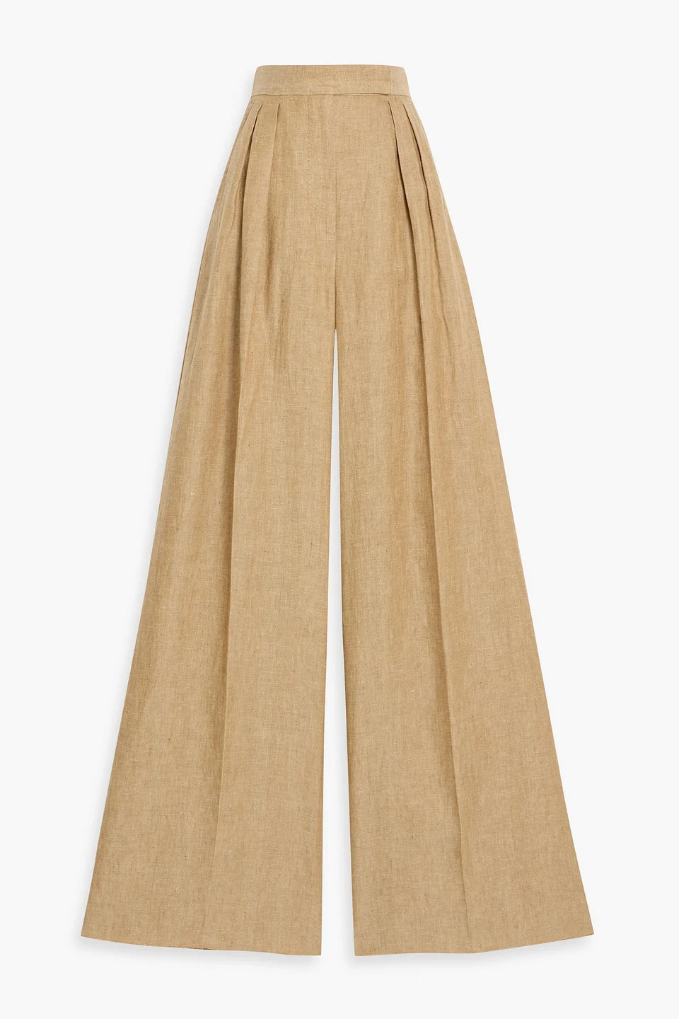 Wide-leg pants linen pleated front slant pockets high-rise cut concealed hook, button and zip fastening at front mid-weight, non-stretchy fabric dry clean made in italy 100% Linen Product Code 46376663163125516