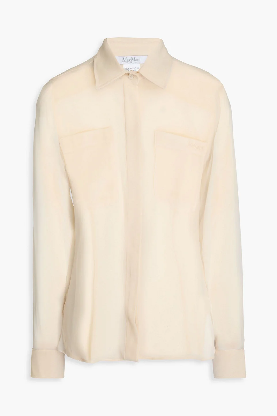 Shirt silk-voile embroidered logo breast pockets side slit hemline partially concealed button fastenings through front detachable camisole to line lightweight, non-stretchy fabric dry clean made in italy 100% Silk Product Code 46376663162852832