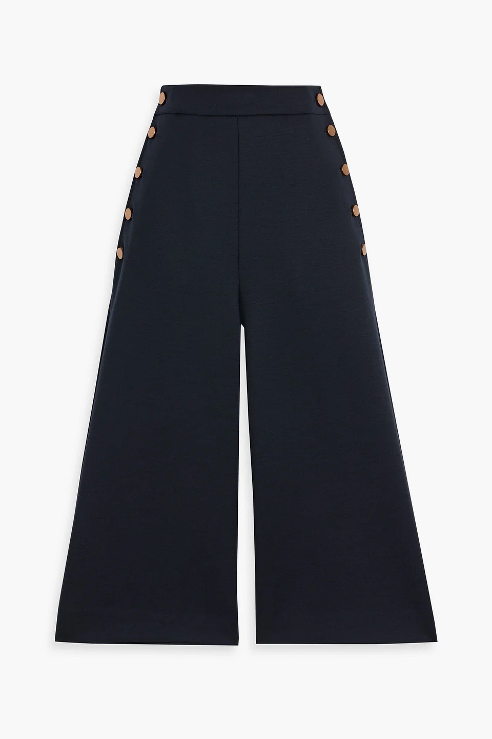 Culottes jersey wool-blend button-detailed front slant pockets high-rise cut concealed zip fastening along side mid-weight, slightly stretchy fabric dry clean imported 57% Virgin Wool 20% Lyocell 19% Polyamide 3% Elastane 1% Polyester Product Code 46376663163126114