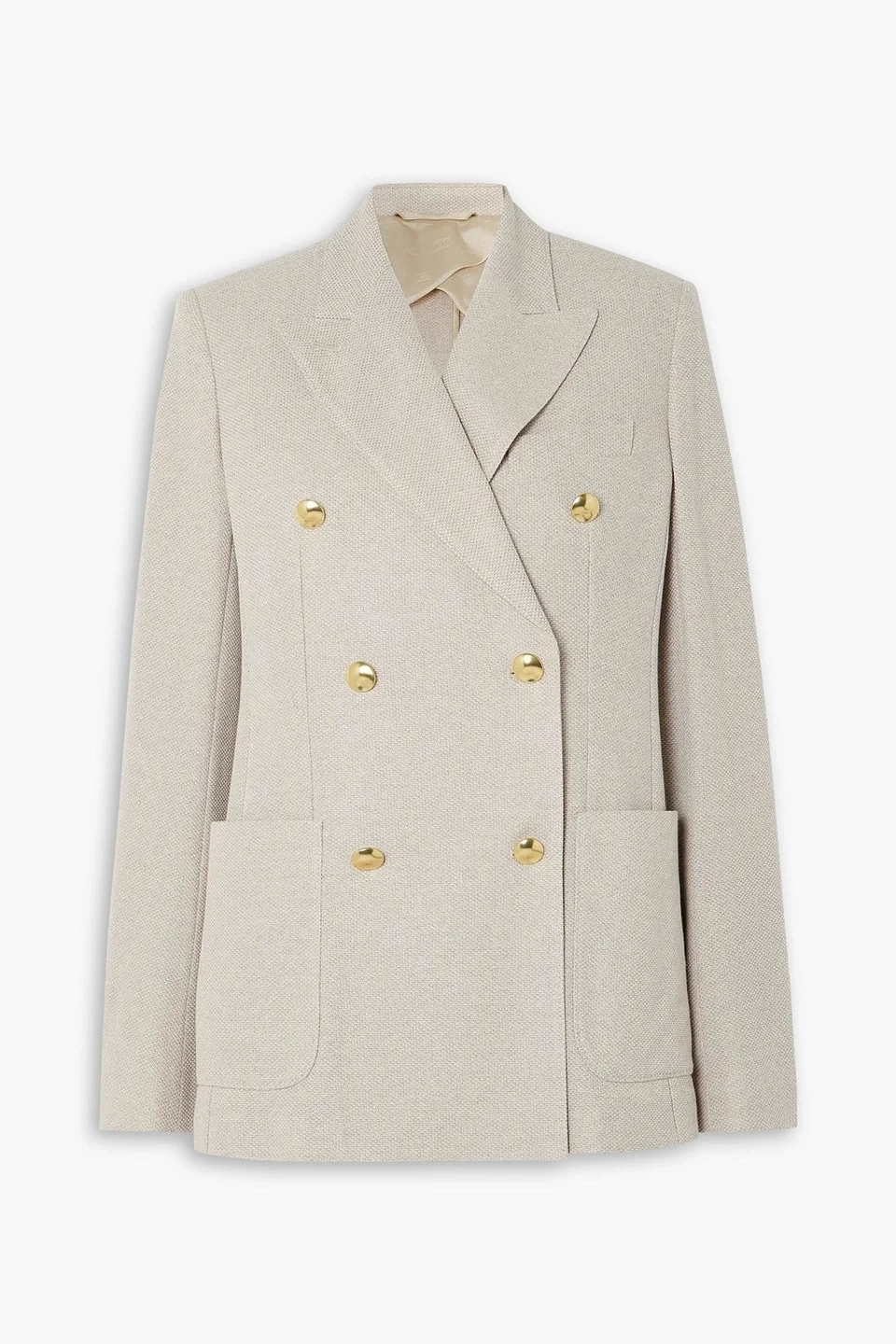 Blazer grain de poudre cotton shoulder pads side patch pockets button fastenings through double-breasted front partially lined back vent mid-weight, non-stretchy fabric dry clean made in italy 100% Cotton Product Code 46376663163077001
