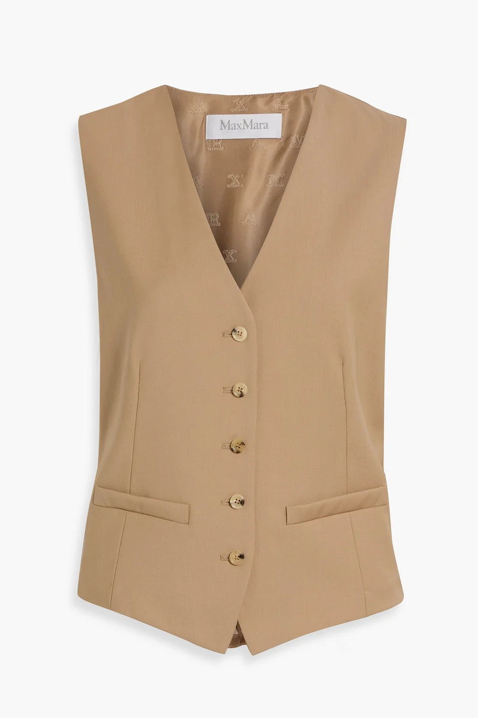 Vest satin-jacquard wool paneled drawstring waist front welt pockets button fastenings through front fully lined mid-weight, non-stretchy fabric dry clean imported 100% Virgin Wool Product Code 1647597337802954