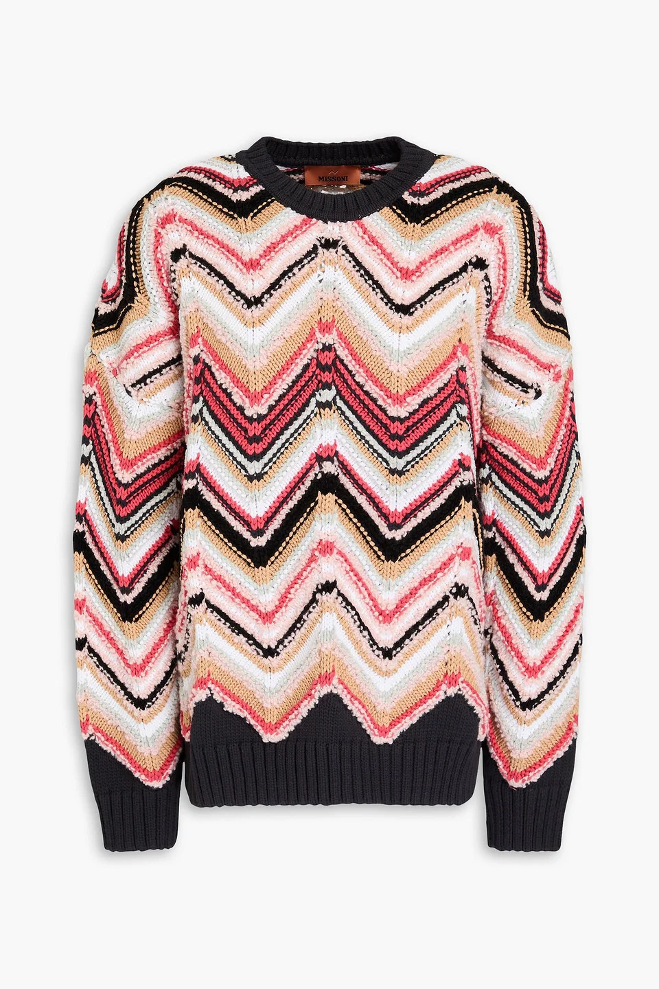 Sweater zigzag design boucle-knit ribbed trims slips on chunky knit hand wash or dry clean made in italy 33% Wool 31% Cotton 30% Polyamide 6% Viscose Product Code 46376663162882831