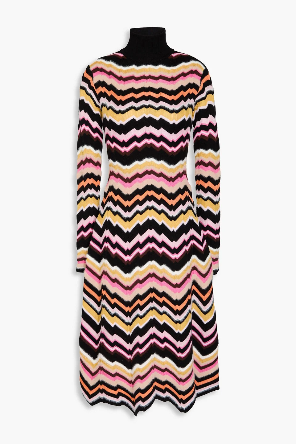 Dress zigzag design crochet-knit brushed ribbed trims flared hem slips on mid-weight knit hand wash or dry clean made in italy 55% Viscose 40% Wool 5% Polyamide Product Code 46376663162882737