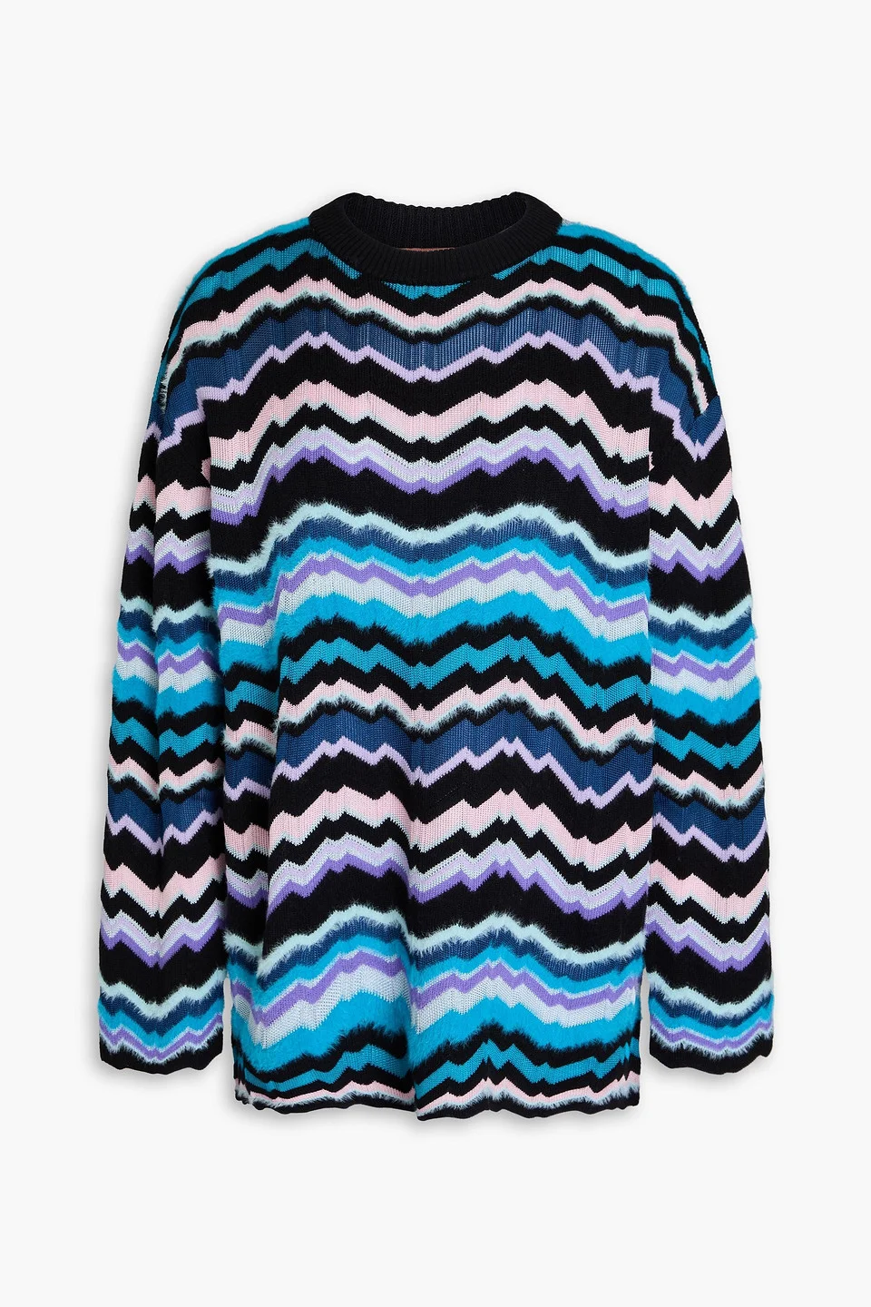 Sweater zigzag design knitted brushed ribbed trims slips on mid-weight knit hand wash or dry clean made in italy 55% Viscose 40% Wool 5% Polyamide Product Code 46376663162882068