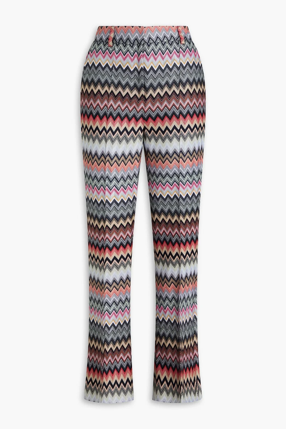 Bootcut pants zigzag design cotton-blend crochet-knit two side slant pockets back welt pocket belt loops high-rise cut concealed hook, button and zip fastening at front mid-weight knit dry clean made in italy 60% Cotton 40% Viscose Product Code 1647597357629391