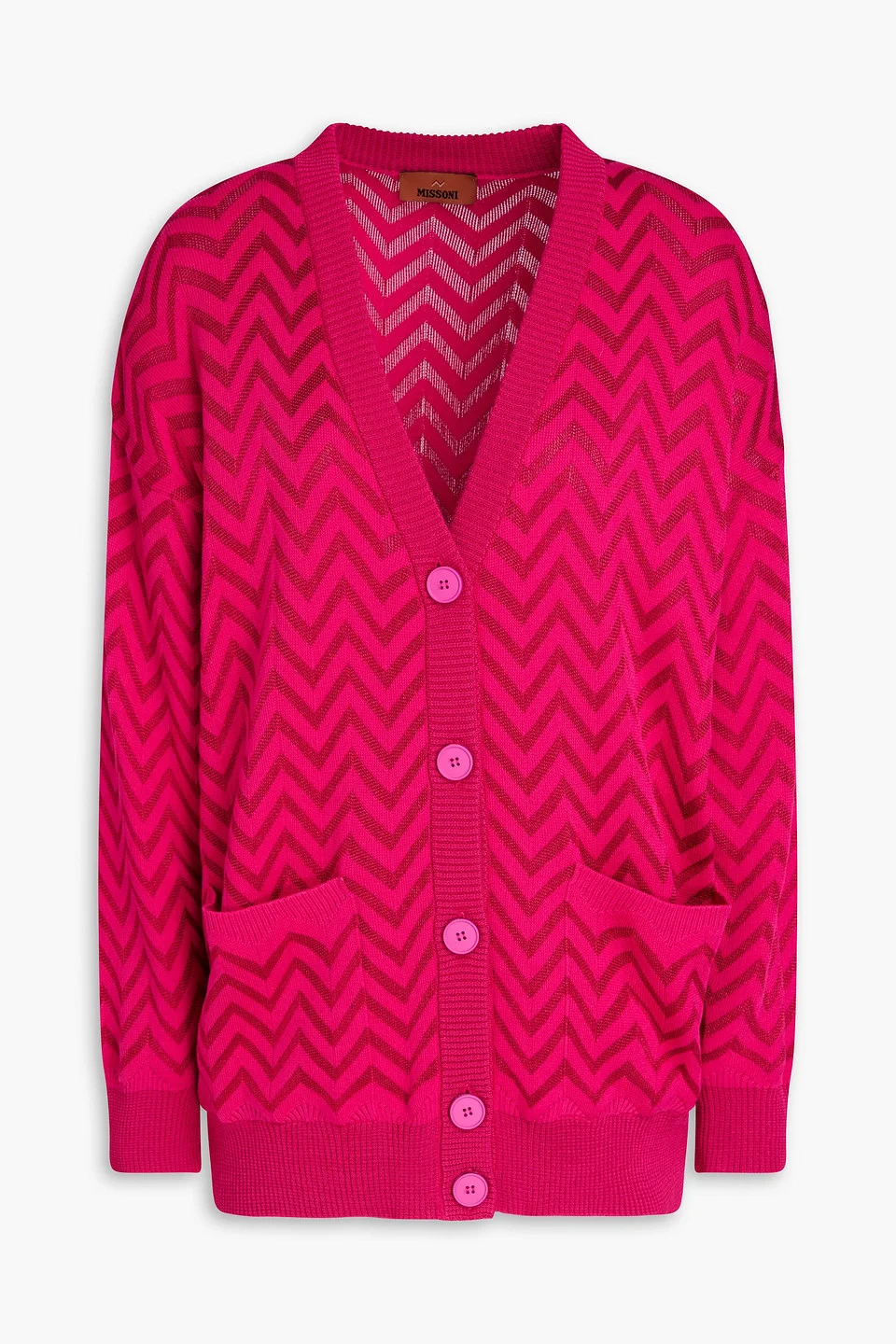 Cardigan zigzag design crochet-knit cotton-blend ribbed trims patch pockets button fastenings through front mid-weight knit dry clean made in italy 61% Cotton 37% Viscose 1% Elastane 1% Polyamide Product Code 46376663163059376
