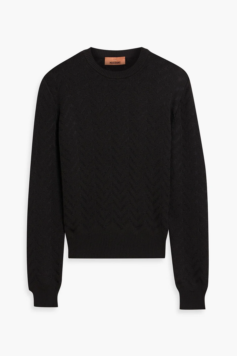 Sweater zigzag design crochet-knit cotton-blend ribbed trims slips on mid-weight knit dry clean made in italy 52% Cotton 46% Viscose 1% Elastane 1% Polyamide Product Code 46376663163075672