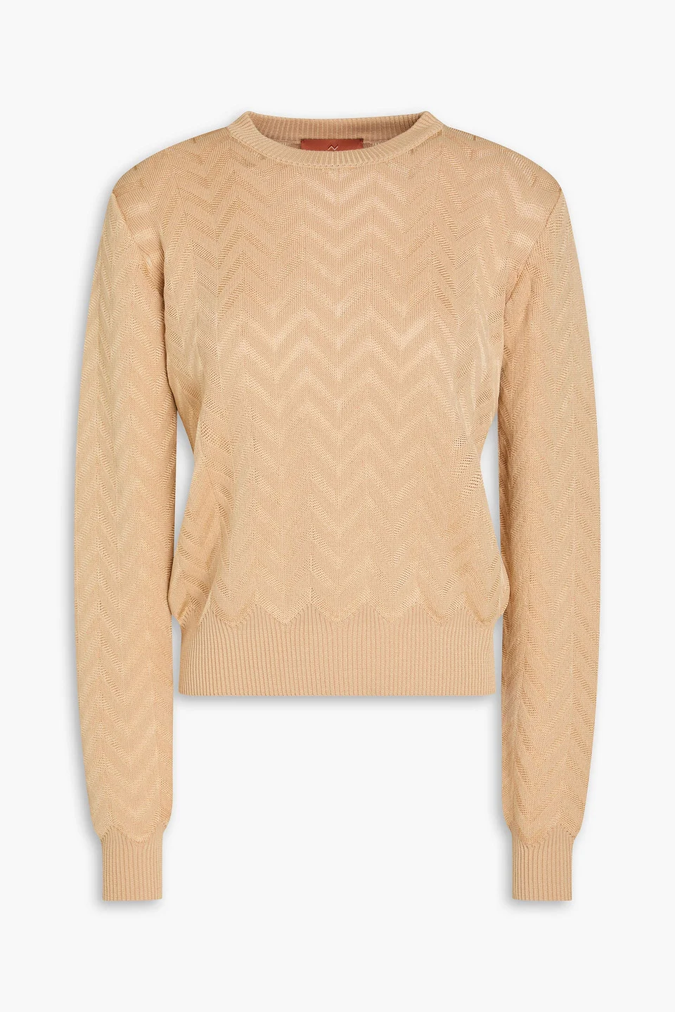 Sweater zigzag design crochet-knit cotton-blend ribbed trims slips on mid-weight knit dry clean matching pants also available made in italy 52% Cotton 46% Viscose 1% Elastane 1% Polyamide Product Code 46376663163059286