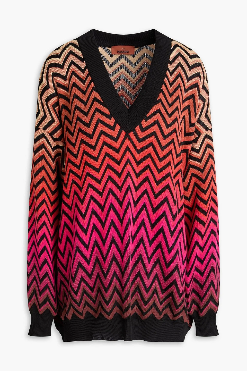 Sweater zigzag design crochet-knit cotton-blend ribbed trims slips on mid-weight knit dry clean made in italy There’s so much to love about this V-neck sweater from Missoni. The mid-weight cotton knit offers a soft, cozy hand with a bold zigzag motif for maximum visual impact. Grab it for a weekend gallery visit and team with a midi skirt for a refined, fashion-forward moment. 51% Cotton 49% Viscose Product Code 46376663163118842