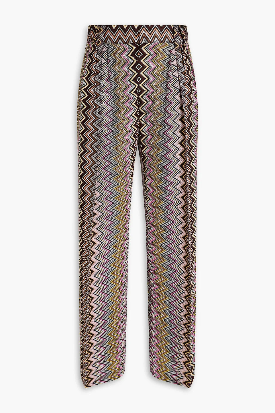 Wide-leg pants zigzag design crochet-knit pleated side slant pockets belt loops high-rise cut concealed hook, button and zip fastening at front lightweight knit dry clean made in italy 100% Viscose Product Code 46376663162879596