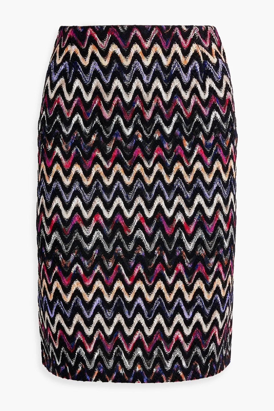 Pencil skirt zigzag design crochet-knit wool-blend back slit fully lined concealed hook and zip fastening at side mid-weight knit dry clean made in italy Complete your look with the matching top 55% Wool 45% Velcro Product Code 1647597343216062