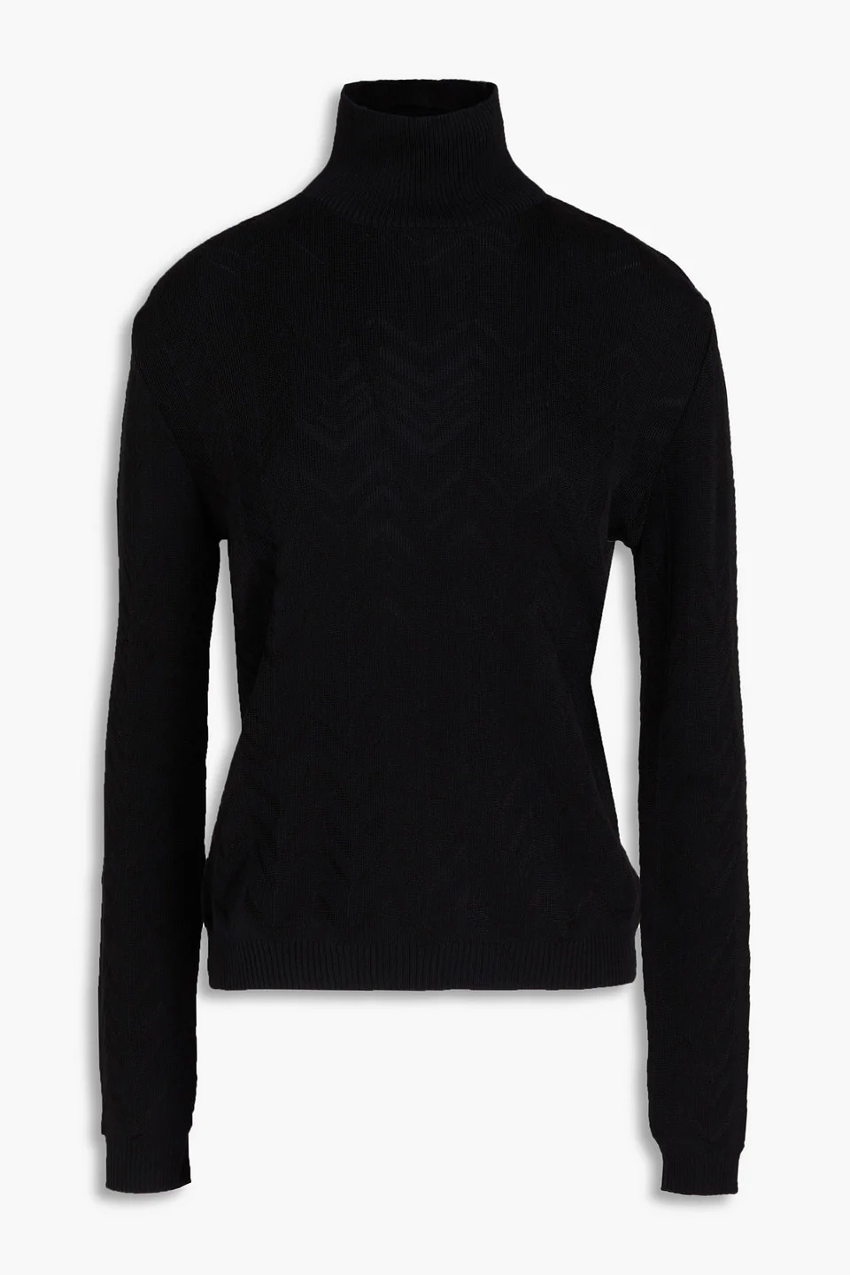 Turtleneck sweater crochet-knit wool-blend ribbed trims slips on mid-weight knit dry clean imported 60% Wool 40% Viscose Product Code 1647597342316242