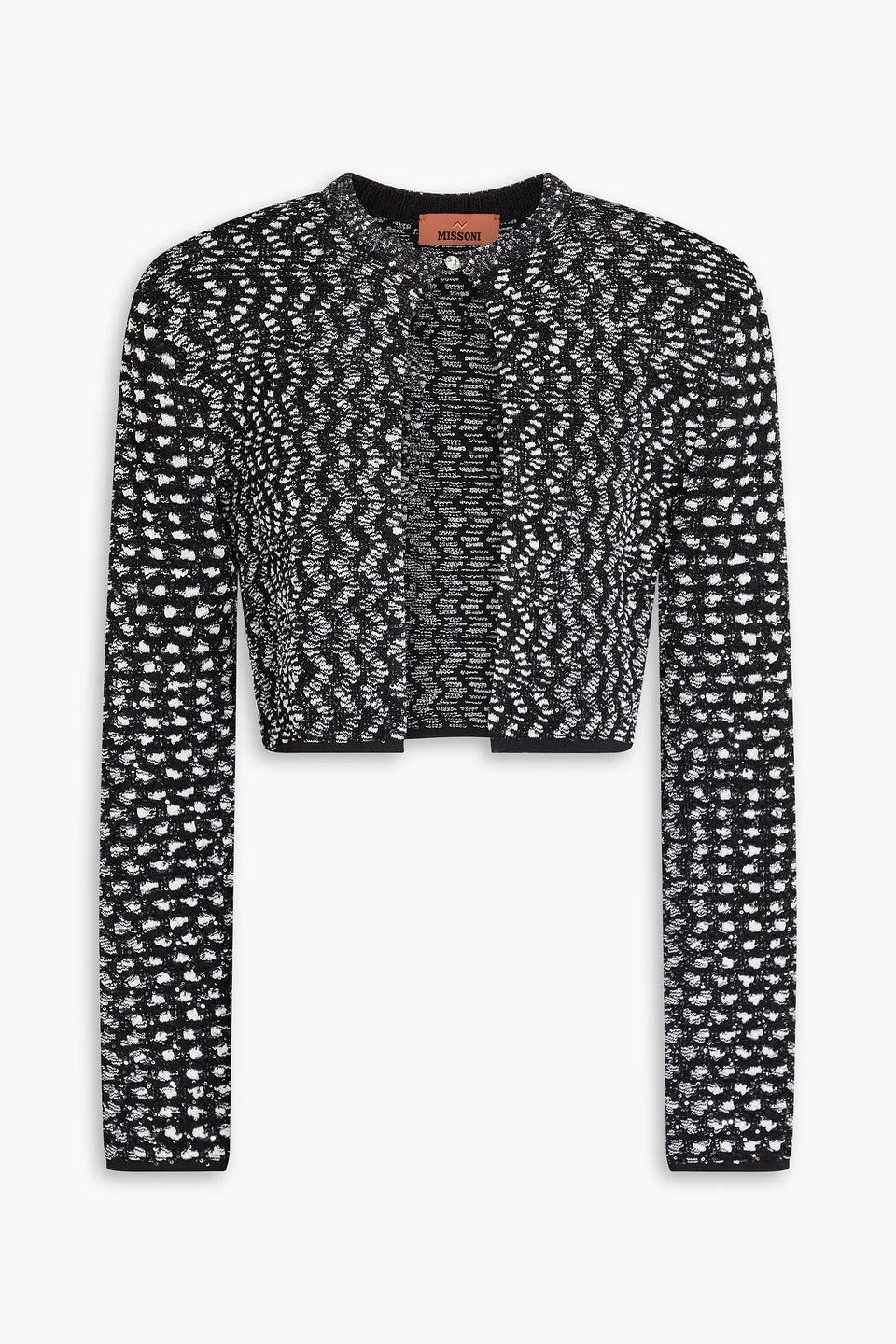 Cardigan jacquard-knit sequins cropped ribbed trims button fastening at neck mid-weight knit hand wash or dry clean made in italy 73% Viscose 18% Polyamide 8% Polyester 1% Elastane Product Code 46376663162882773