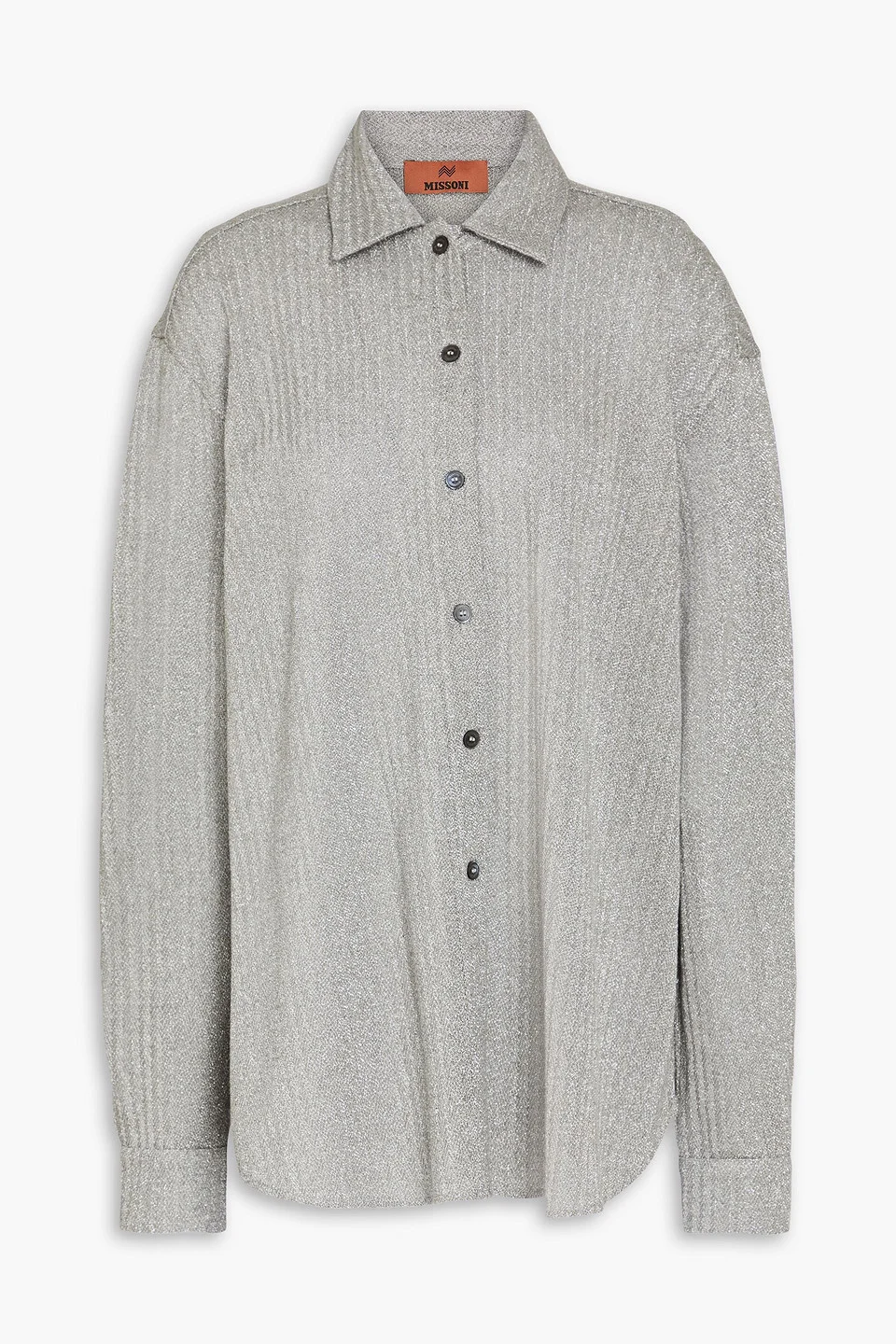 Shirt metallic crochet-knit cotton-blend buttoned cuffs button fastenings through front mid-weight knit dry clean made in italy 59% Cotton 26% Viscose 15% Metallic fiber Product Code 1647597357606022