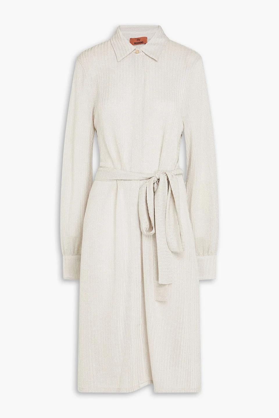 lamé-effect belted shirtdress