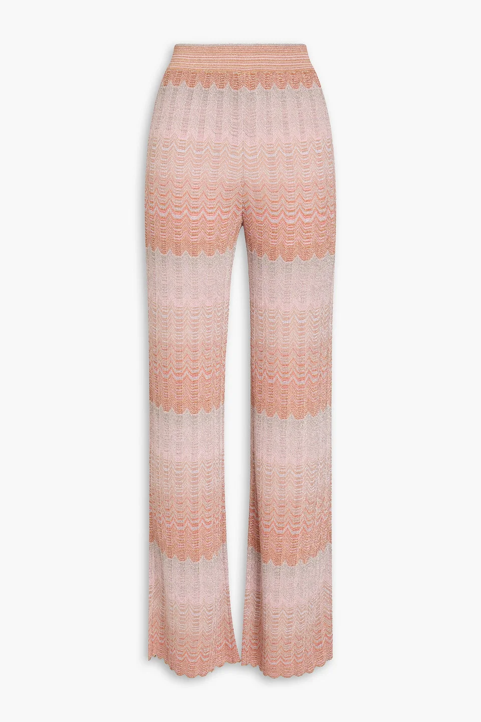 Flared pants metallic zigzag design crochet-knit scalloped trims elasticated waist high-rise cut mid-weight knit hand wash or dry clean imported 66% Viscose 34% Metallic fiber Product Code 46376663162882753