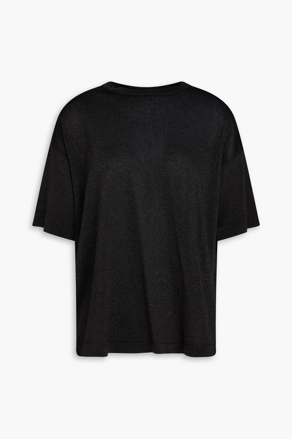 Top metallic knitted ribbed trims slips on lightweight knit dry clean imported 88% Viscose 12% Metallic fiber Product Code 46376663163056072