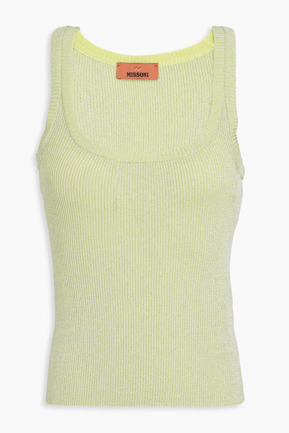 Tank metallic ribbed-knit slips on mid-weight knit dry clean imported 88% Viscose 12% Metallic fiber Product Code 46376663163056090